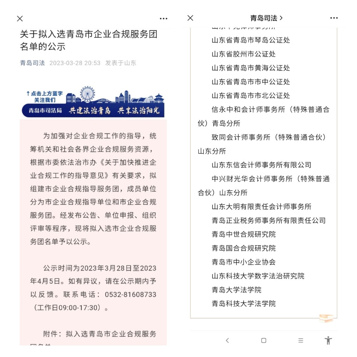 为落实学校“校地融合、校企链合、平台聚合、资源整合、服务集合”五大行动要求,太阳成集团tyc9728组织专业力量,依托院级企业合规研究中心,在青岛市司法局的统筹协调下为企业提供定制合规服务产品,为企业开展合规培训、宣传解读合规相关政策、提供推进企业合规体系建设的其他服务等。2023年4月6日,经过青岛市司法局的严格遴选,太阳成集团tyc9728企业合规研究中心顺利入选青岛市企业合规服务团。根据计划和企业的具体需求,太阳成集团tyc9728企业合规服务团队将陆续为社会各界提供高质量的企业合规法律服务,并期待通过该渠道探索打造校地融合发展的新模式。