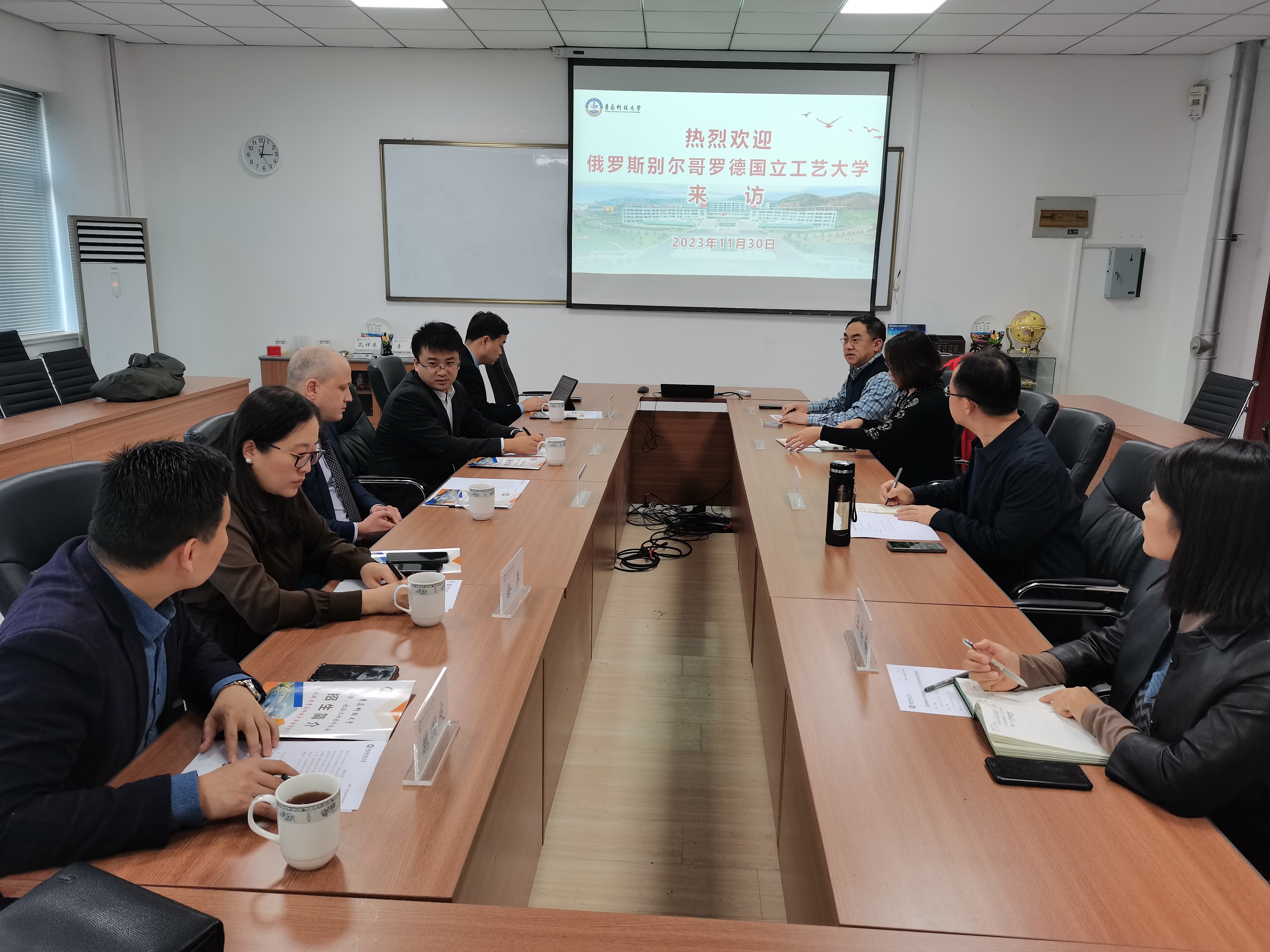 鲁斯兰列索维克介绍了俄罗斯别尔哥罗德国立工艺大学的基本情况、学科特色、对外交流与合作等内容,并表达了加强与我校交流合作和人才培养的期望。