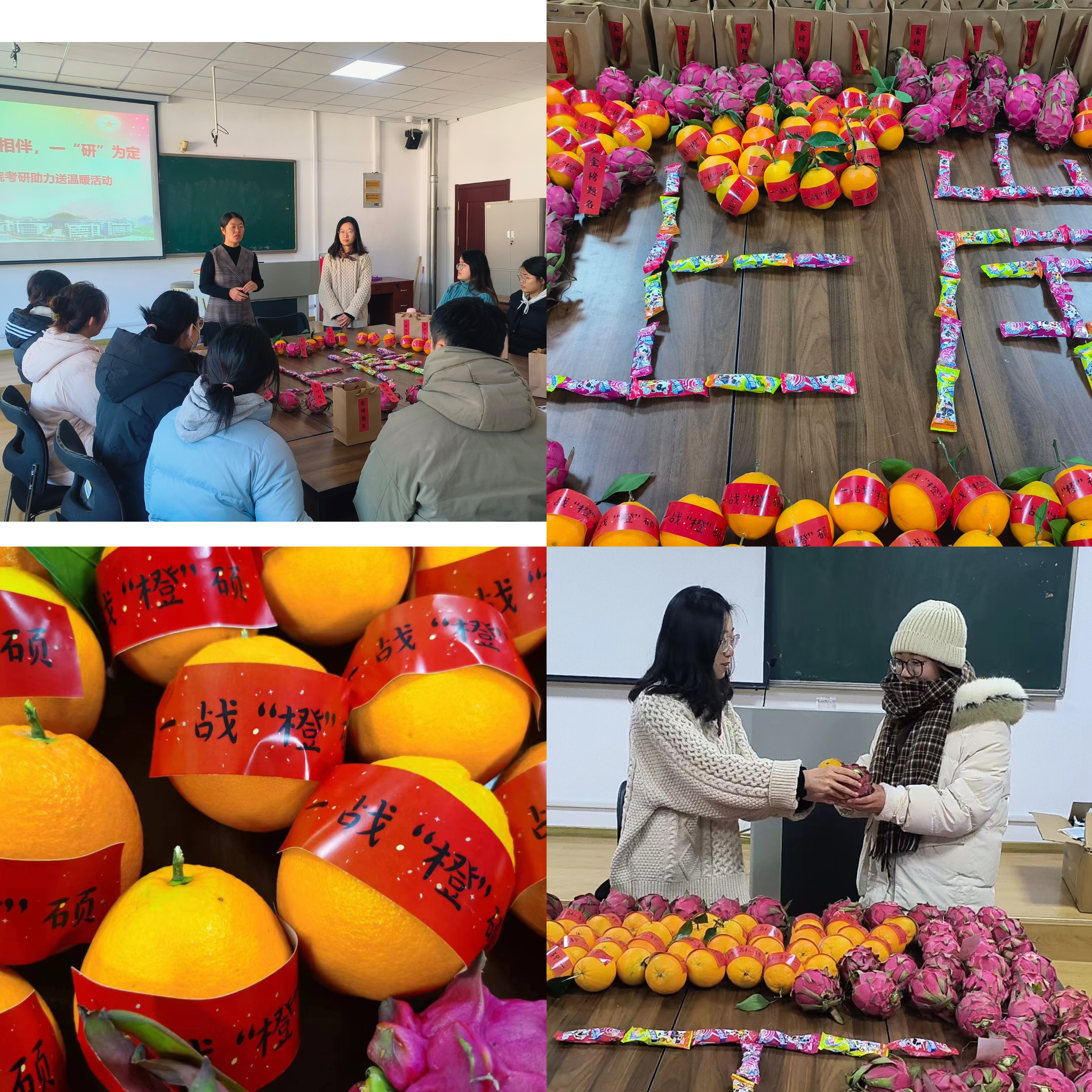 傲雪寒梅香袅袅,一战橙硕果累累。为缓解考研学子考前压力,增加迎考信心,12月21日,太阳成集团tyc9728举办“研路相伴,一‘研’为定”考研助力暖心活动,太阳成集团tyc9728党总支副书记兼副院长王祥梅、毕业生辅导员王梦珂,考研学生代表参加本次活动。