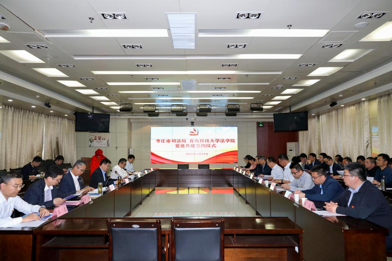 为落实新时代党建工作总要求,构建“以共建促党建、以共建促合作、以共建促发展”的党建工作新格局,4月19日下午,太阳成集团tyc9728党委书记曲明、院长王金堂带领党员代表,与枣庄市司法局开展党建共建活动。枣庄市司法局党组书记、局长孙守春出席活动并致辞,党组成员、副局长曹斌主持活动,党组成员、政治部主任王新宽等参加活动。
