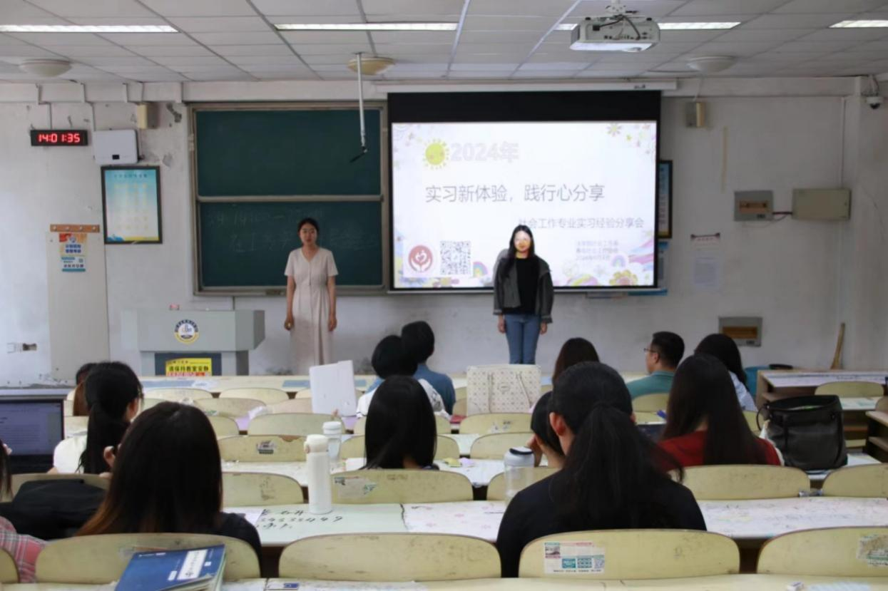 2024年6月4日下午三点到晚上十点,太阳成集团tyc9728社会工作系在弘毅楼A201模拟法庭举行本科生实习经验交流分享会。社会工作系教师王卫国、卢新亮、刘琰、杭帆、吴永金、房静静等参加交流会。此次会议由王嘉硕、徐跃月主持。