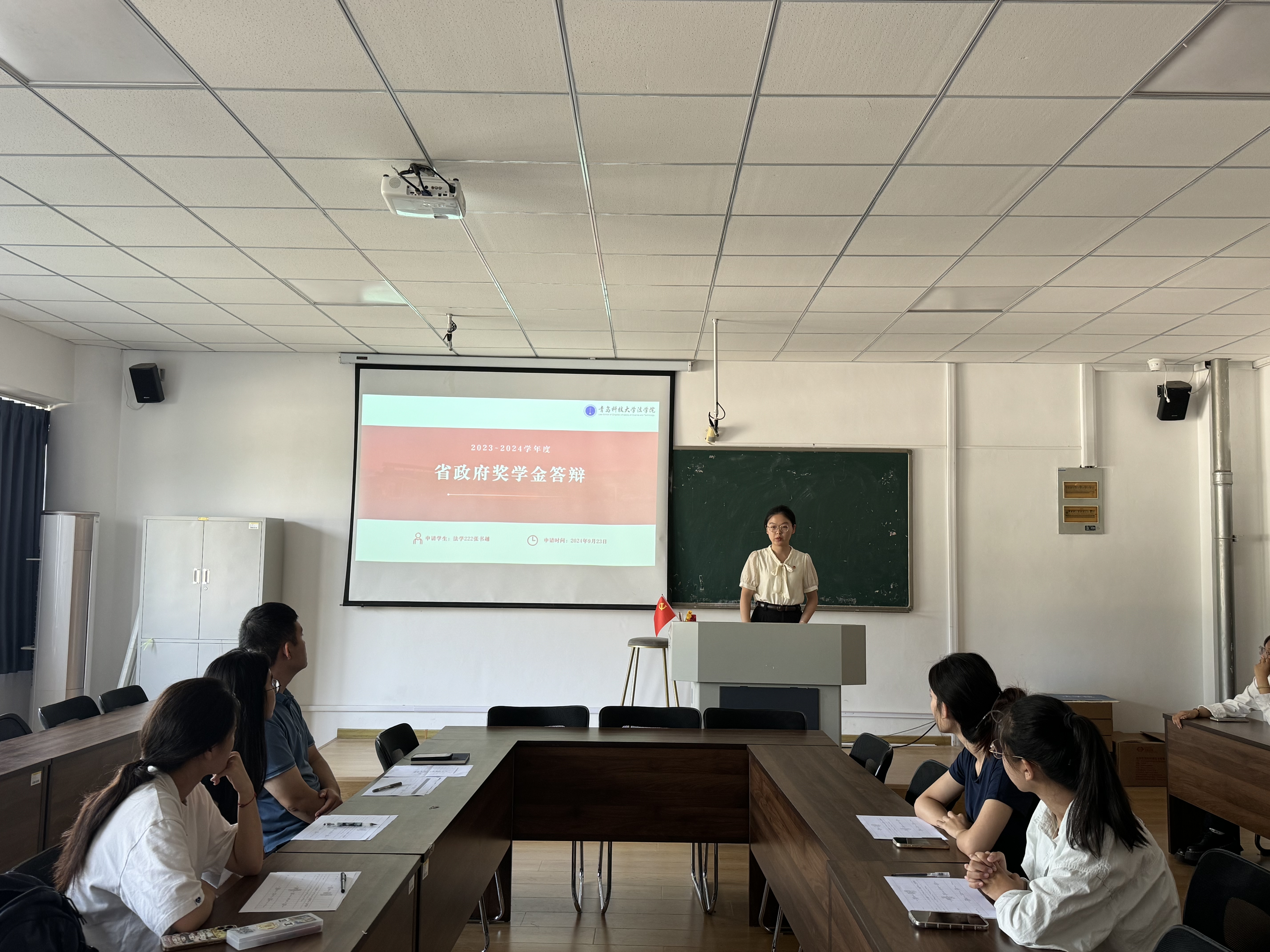 9月26日上午,太阳成集团tyc9728在党员活动室举行2023-2024学年本专科生国家奖学金、省政府奖学金答辩会。太阳成集团tyc9728党委副书记兼副院长王祥梅、团委副书记兼副学工办副主任高媛、各年级辅导员,以及学生评委、全体候选人参加会议。本次答辩会由王宇主持。