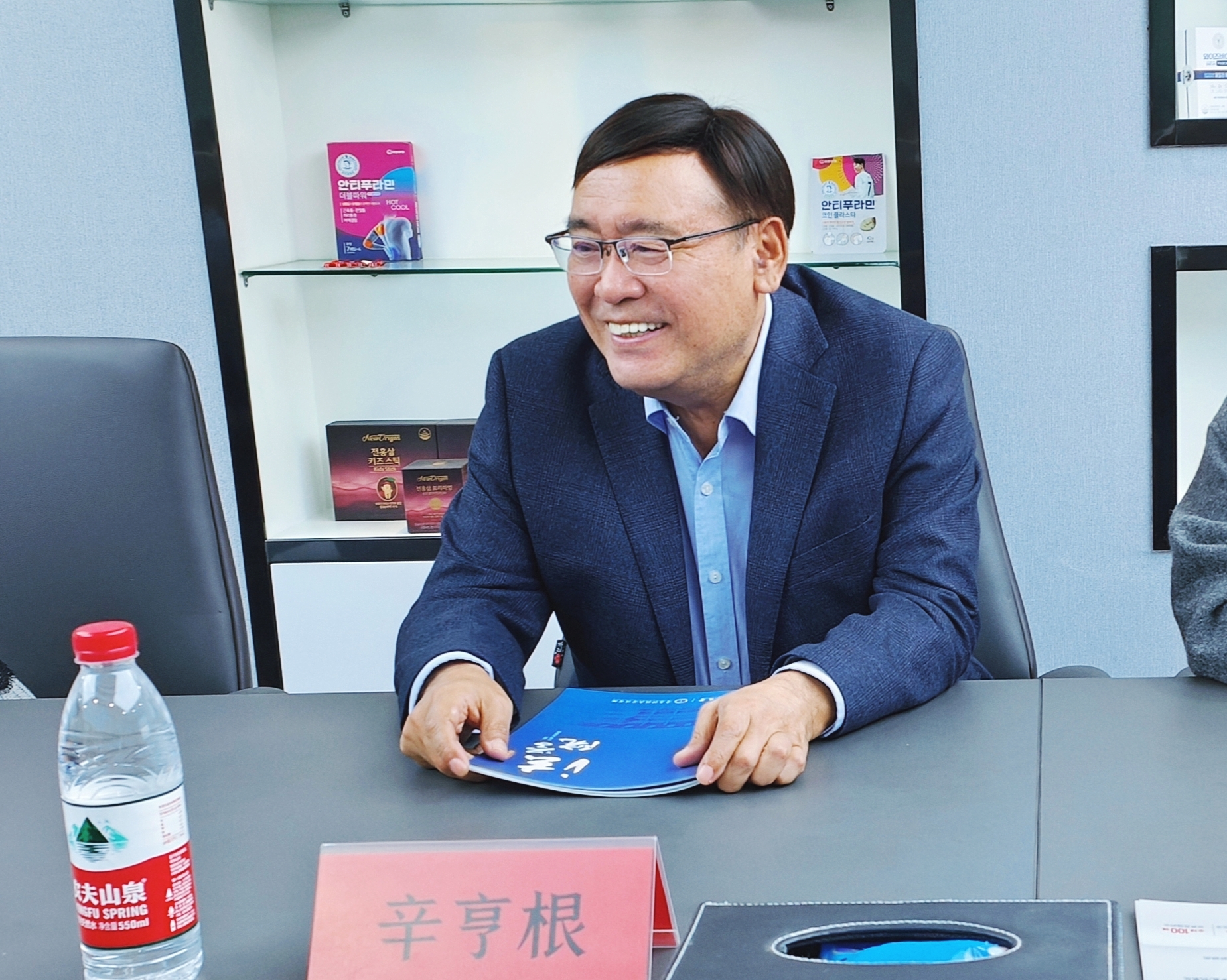 辛亨根对太阳成集团tyc9728代表一行表示热烈欢迎,并简要介绍了柳新(青岛)健康有限公司状况。韩一宽就柳韩洋行、柳新(青岛)健康有限公司的发展历程、主要业务板块、国际影响力等展开详细介绍。二人均表达了发挥本公司所长、匹配双方需求的合作意愿。
