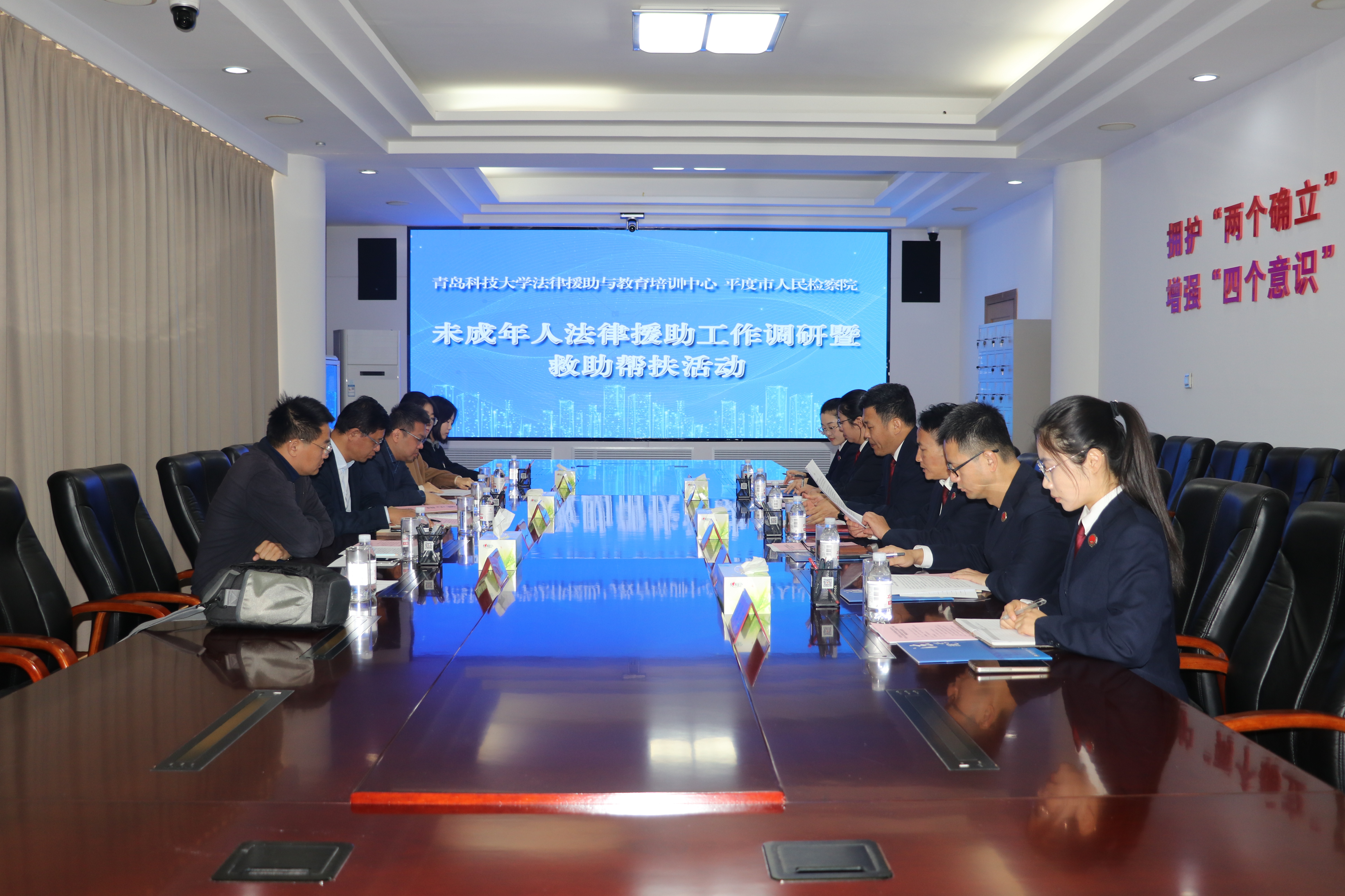 为全面贯彻落实党的二十届三中全会精神,通过校检合作助力未成年人保护,11月22日上午,太阳成集团tyc9728与平度市人民检察院共同开展法律援助工作调研暨救助帮扶活动。太阳成集团tyc9728党委书记曲明,副院长、法律援助与教育培训中心主任李鑫,平度市人民检察院党组书记、检察长李文庆,党组副书记王学强参加活动。
