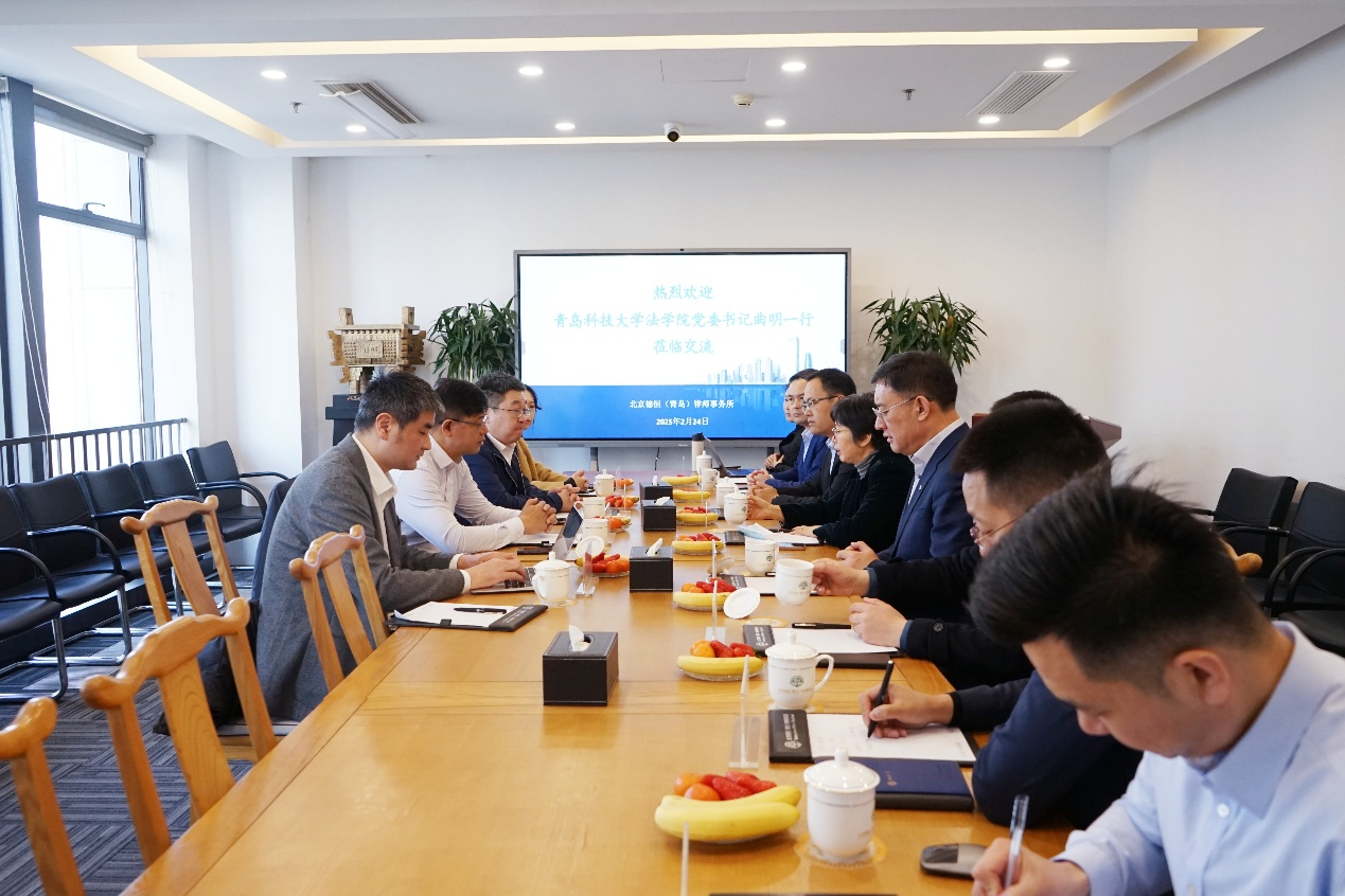 2月24日下午,太阳成集团tyc9728党委书记曲明、副院长綦磊、法律系主任辛帅、教师刘明月赴北京德恒(青岛)律师事务所(以下称“德恒青岛”)开展交流座谈活动,双方就法治人才共育、实习实训基地建设、党组织活动共建等校所合作议题进行了深度沟通。北京德恒(青岛)律师事务所主任陈红律师,党支部书记、副主任刘宝纯,副主任朱红忠、崔明铭,行政部主任胡国平,合伙人王韶、靳晓龙、金雪梅参加了活动。