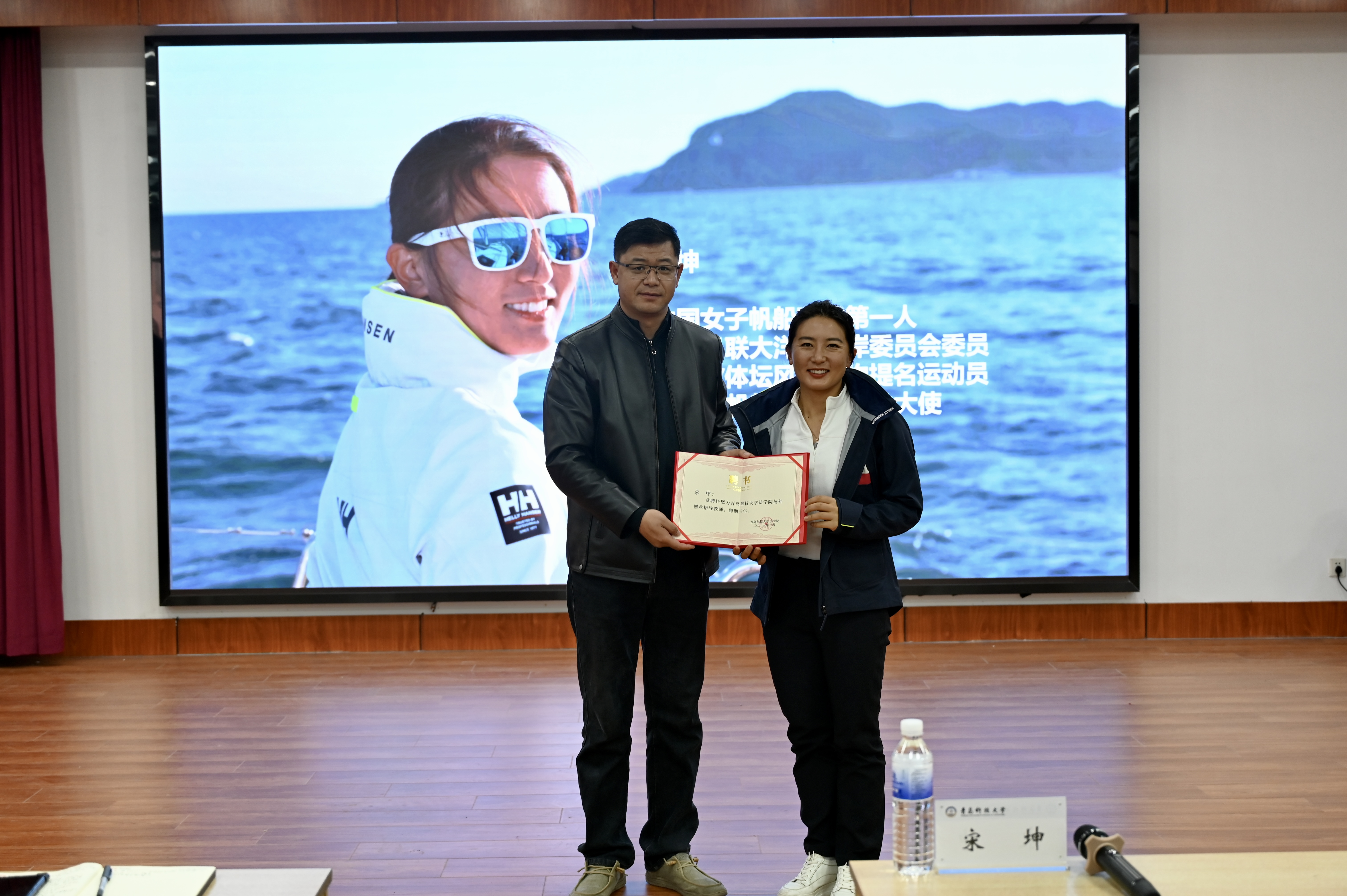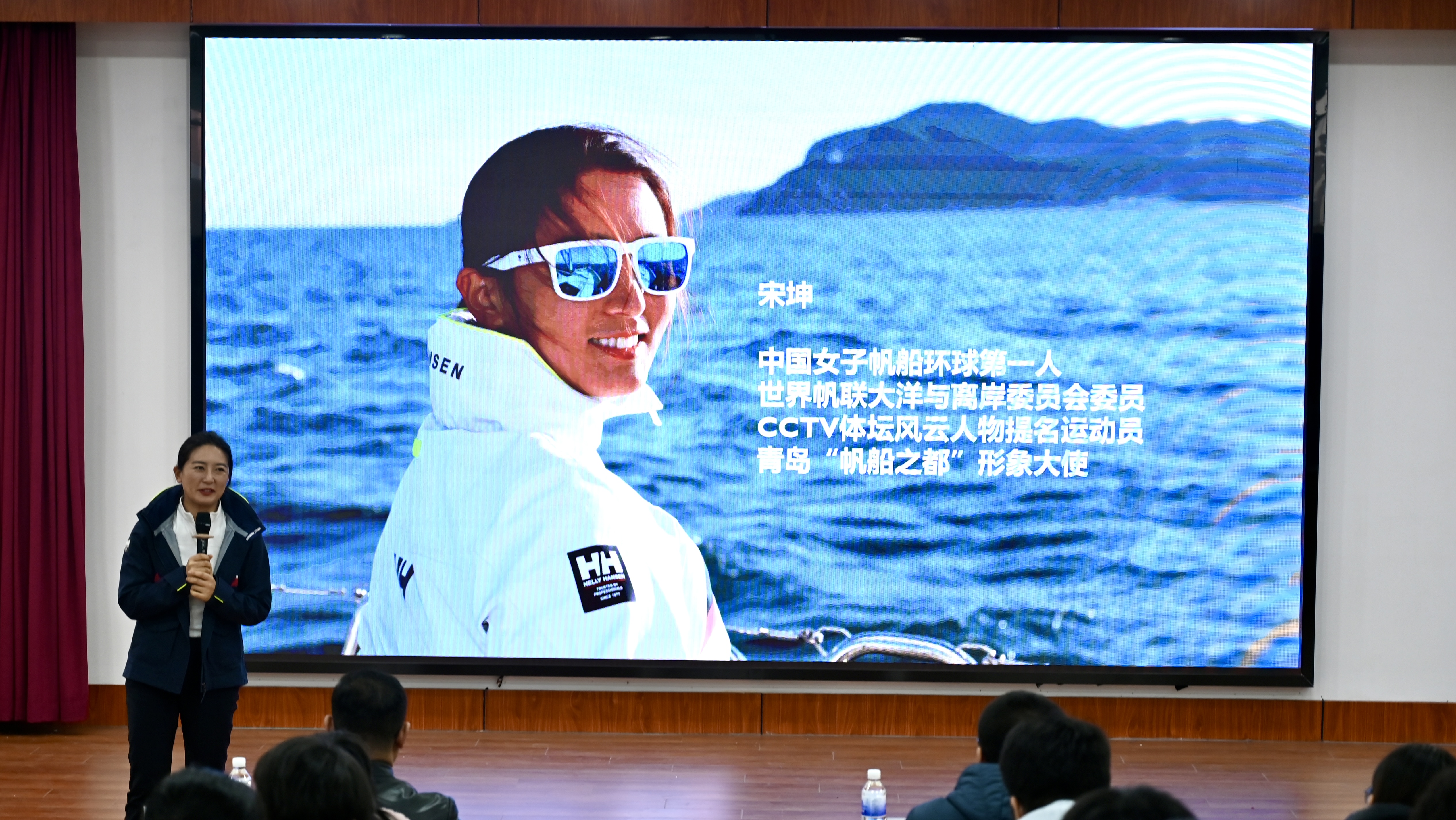 宋坤曾随“青岛号”大帆船参加13/14克利伯环球帆船赛全程比赛,历经近11个月共315天,航行4万多海里绕地球一周,成为首位完成环球航海的中国女性。她分享了在环球航行时的点点滴滴,从如何决定参加环球帆船赛,到在海上经历的风险和挑战,再到抵达终点时的喜悦和感悟,给同学们带来了一场生动有趣、内涵丰富的体育思政课。她激励同学们要勇于面对学习、生活中的挑战,要有坚持不懈的精神,不断追求卓越。