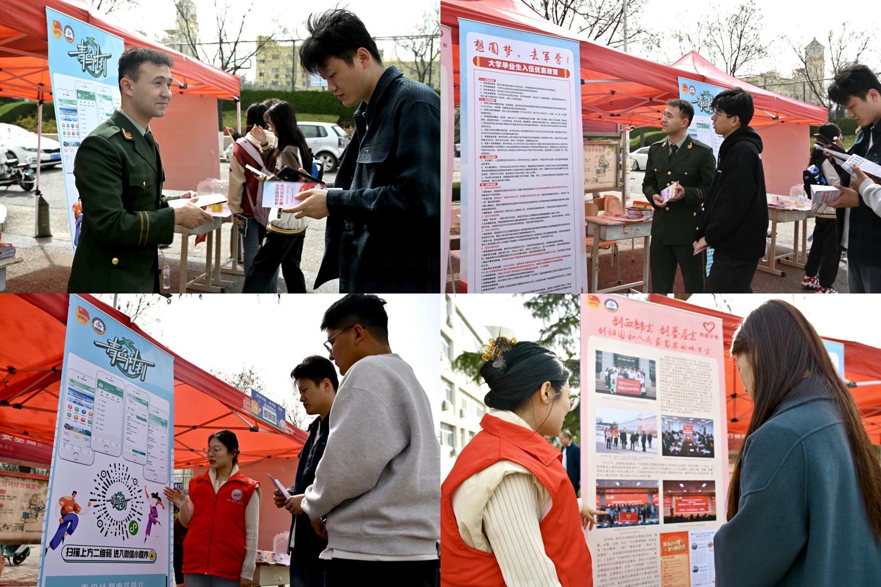 双选会现场还设置“征兵入伍”“青鸟计划”“西部计划”政策咨询处,青年志愿者及退役大学生现场宣讲,并悉心解答相关政策。
