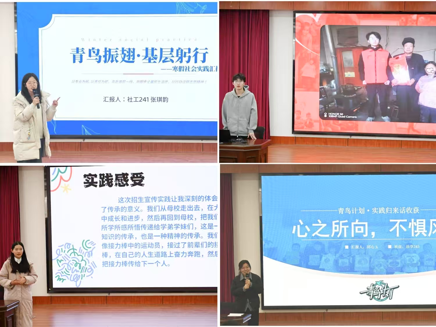 在交流环节,同学们积极互动,就实践过程中遇到的困难、解决方法以及如何更好地将理论知识应用于实践等问题展开了热烈讨论。现场气氛活跃,大家在交流中相互启发、共同进步。