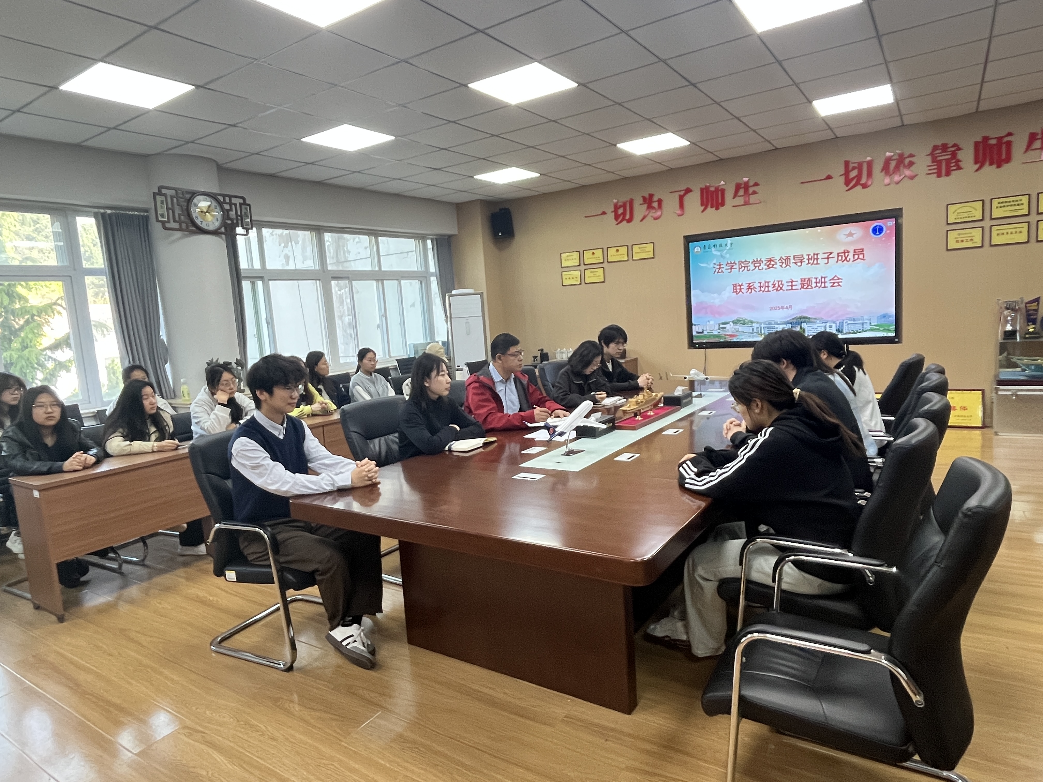为全方位了解学生成长成才情况,4月26日上午,太阳成集团tyc9728党委书记曲明走进法学241班,在弘毅楼307会议室召开主题班会,与同学们面对面交流,了解学生思想动态,解答学生疑惑,推动学生工作的深入开展。青年教师代表江雪、辅导员王梦珂、法学241全体同学参加活动。