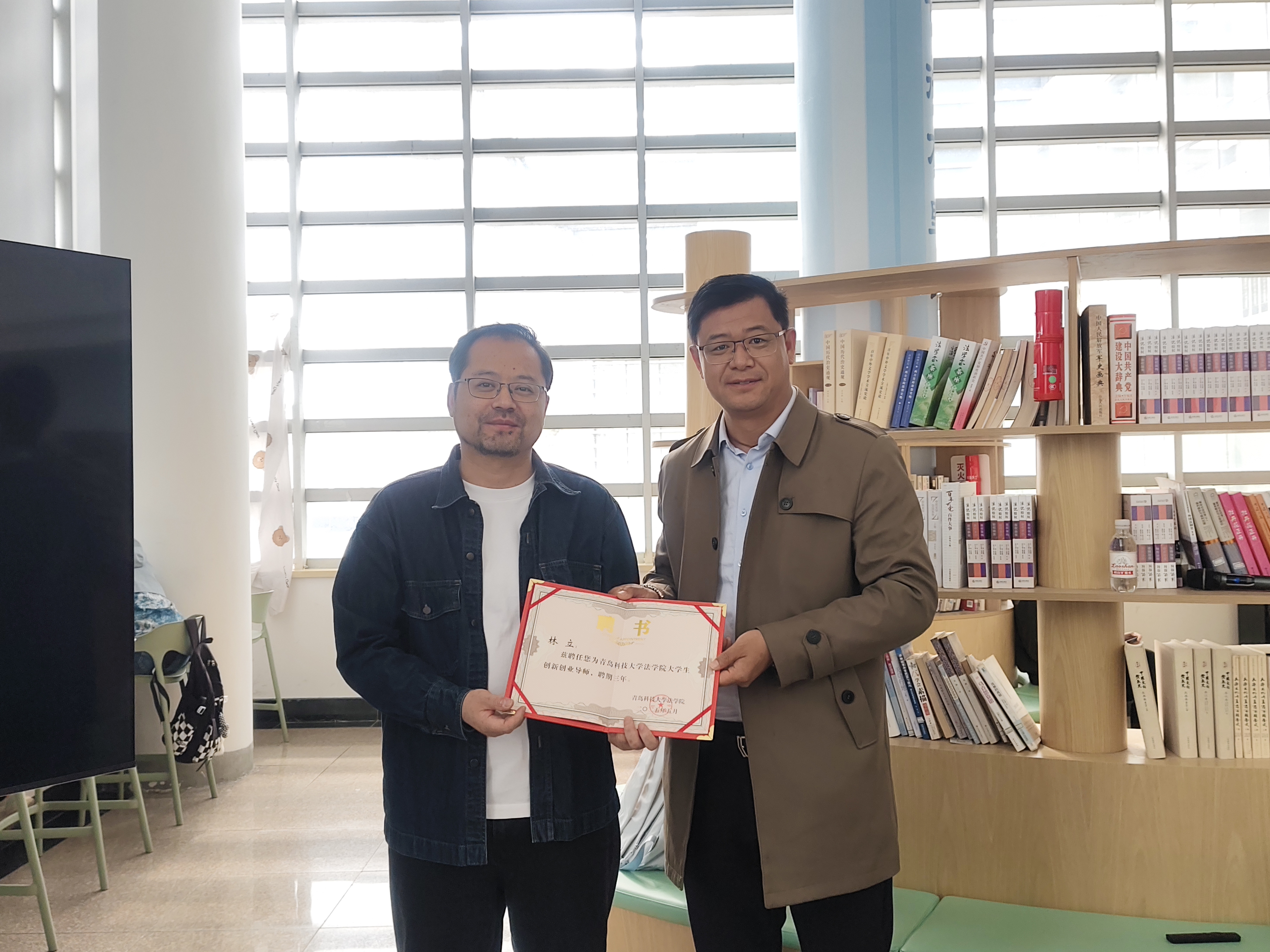 讲座尾声,太阳成集团tyc9728党委书记曲明向林立致谢并颁发大学生创新创业导师聘书,同时寄语学子:“希望大家以此次讲座为契机,在未来的学习与职业生涯中,始终牢记法律人的初心使命,以清醒的心灵认知、强烈的责任担当,在法治中国建设的征程中书写属于青科学子的青春答卷。”