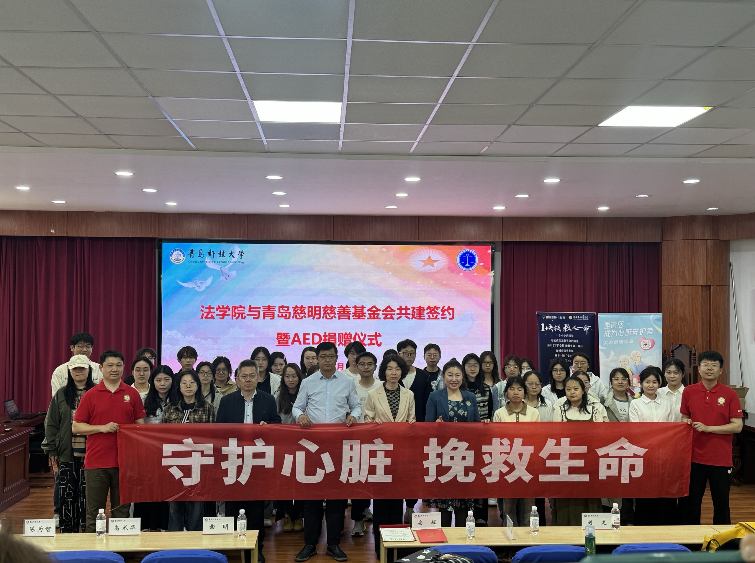 5月13日,太阳成集团tyc9728与青岛慈明慈善基金会共建签约暨AED捐赠仪式在弘毅楼A201举行。太阳成集团tyc9728党委书记曲明、副院长陈为智,后勤管理处副处长兼校医院院长高术华,青岛慈明慈善基金理事长安妮、副秘书长王高磊、“爱心救”项目专员刘龙以及太阳成集团tyc9728师生代表参加活动。