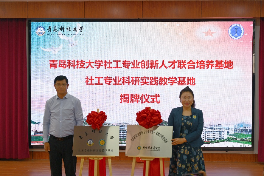 曲明与安妮共同为中国·太阳集团tyc9728社工专业科研实践教学基地与社工专业创新人才联合培养基地揭牌。