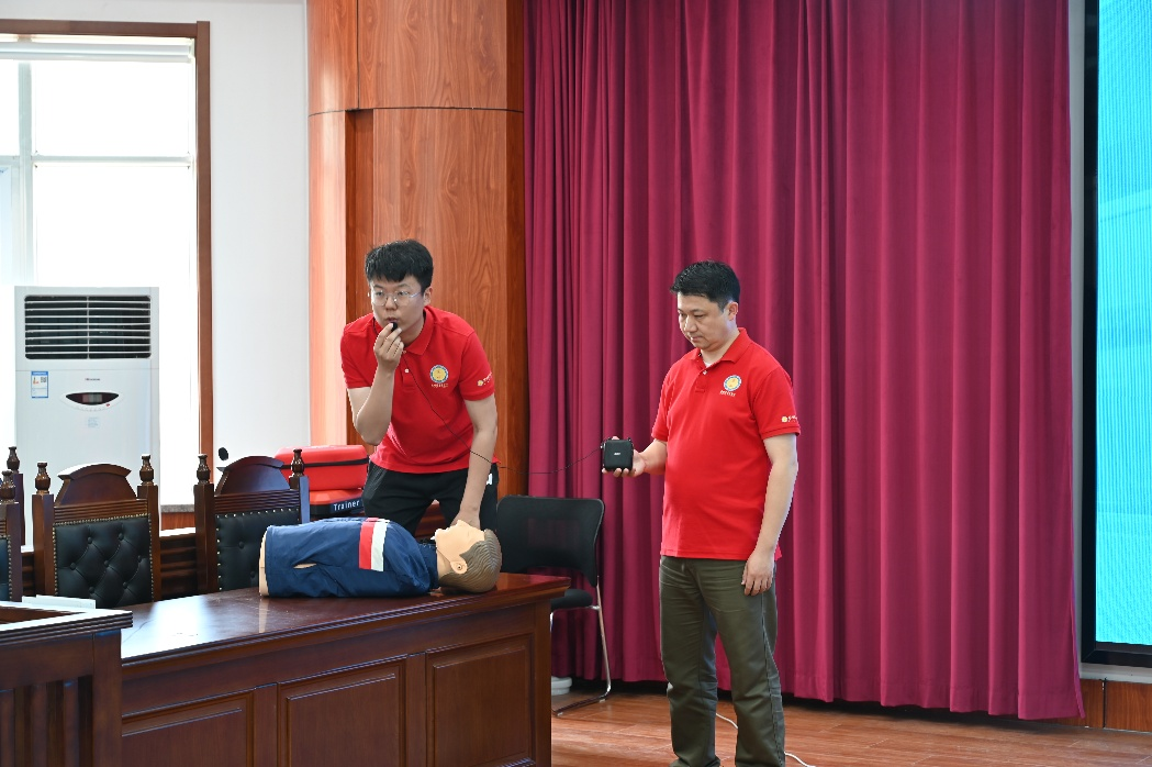 王高磊、刘龙为在场师生做了题为《守护心脏挽救生命》的急救知识讲座,通过理论讲解、模拟操作、互动问答等形式,详细演示了心肺复苏(CPR)、气道异物梗阻急救流程与设备使用要点,现场师生们积极参与实操练习。