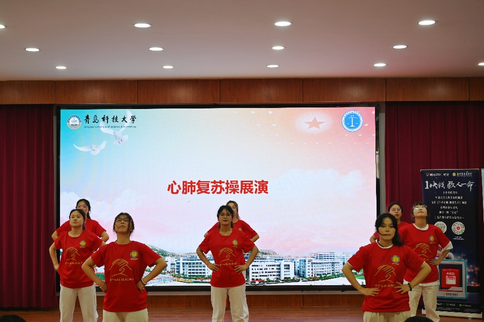 会前,太阳成集团tyc9728青年学生进行了急救操展示,生动演示了心肺复苏、海姆立克法等基础急救技能,融合知识性与趣味性,在师生间掀起一股学习热潮。