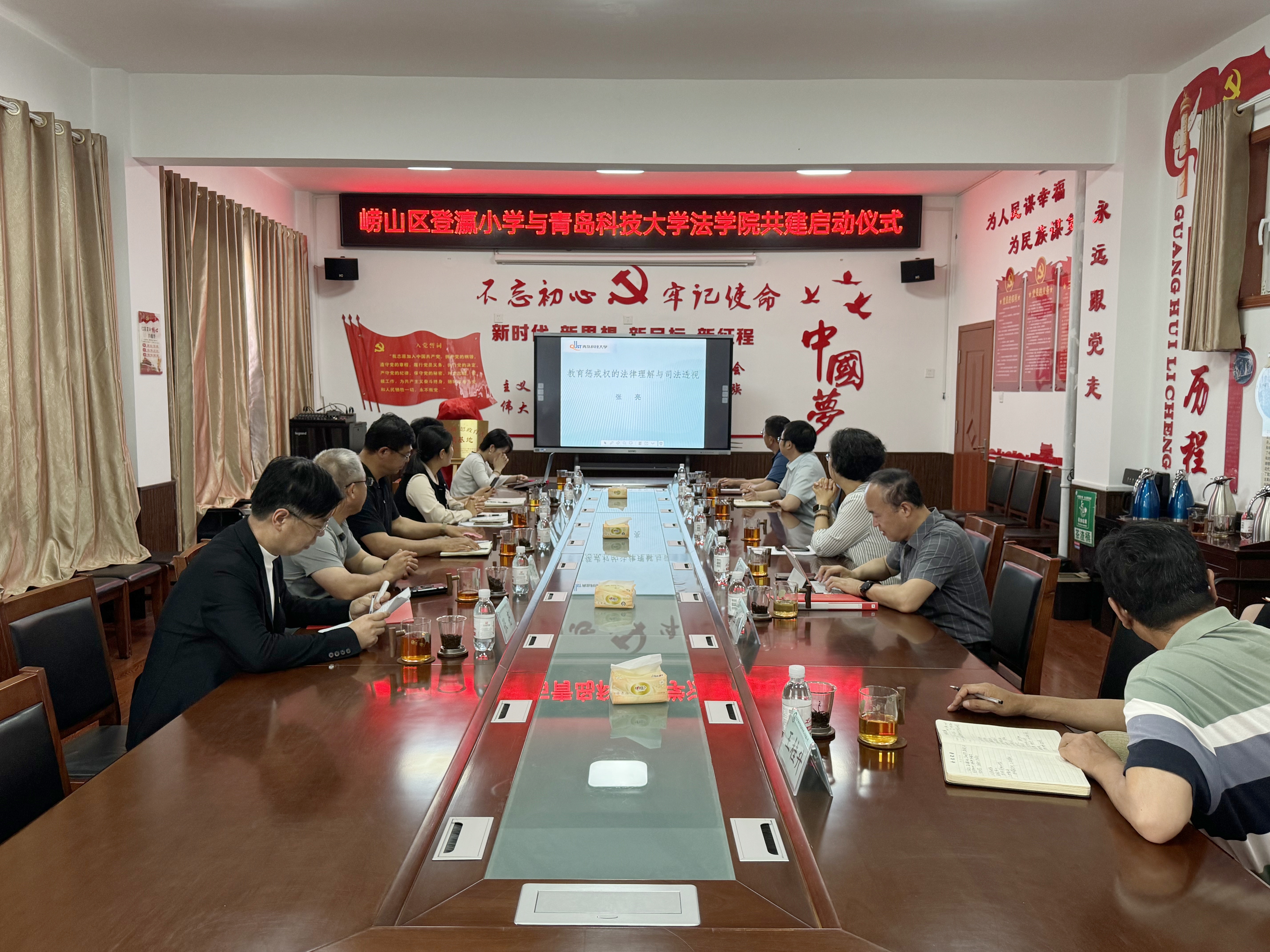 双方签署了党建联动思政育人共建协议书,共同为“党建联动思政育人共建基地”揭牌,曲明为李兆奇颁发校外导师聘书。登瀛小学聘任田源为学校法治副校长,并颁发聘书。张亮以“教育惩戒权的法律理解与司法透视”为题,围绕教育惩戒权的法律性质与分类、教育惩戒权的行为对象与内容以及教育惩戒权相关案例的司法判决逻辑三个方面做党课讲座。