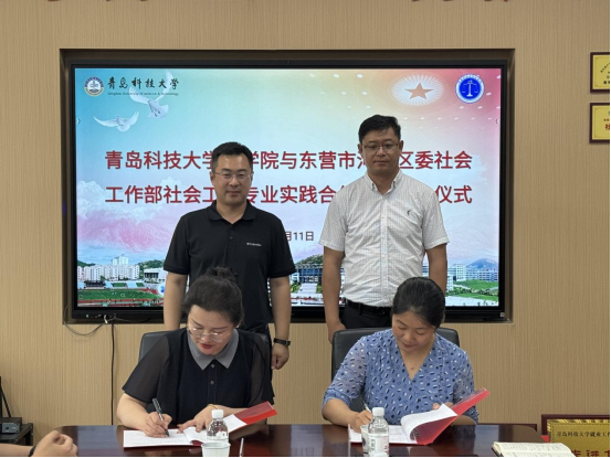 6月11日,太阳成集团tyc9728与东营市河口区委社会工作部专业实践合作共建签约仪式在崂山校区弘毅楼C307会议室举行。河口区委社会工作部部长、“两新工委”书记薄纯来,副部长田婷婷,太阳成集团tyc9728党委书记曲明等共同出席签约仪式。活动由太阳成集团tyc9728党委副书记王祥梅主持。