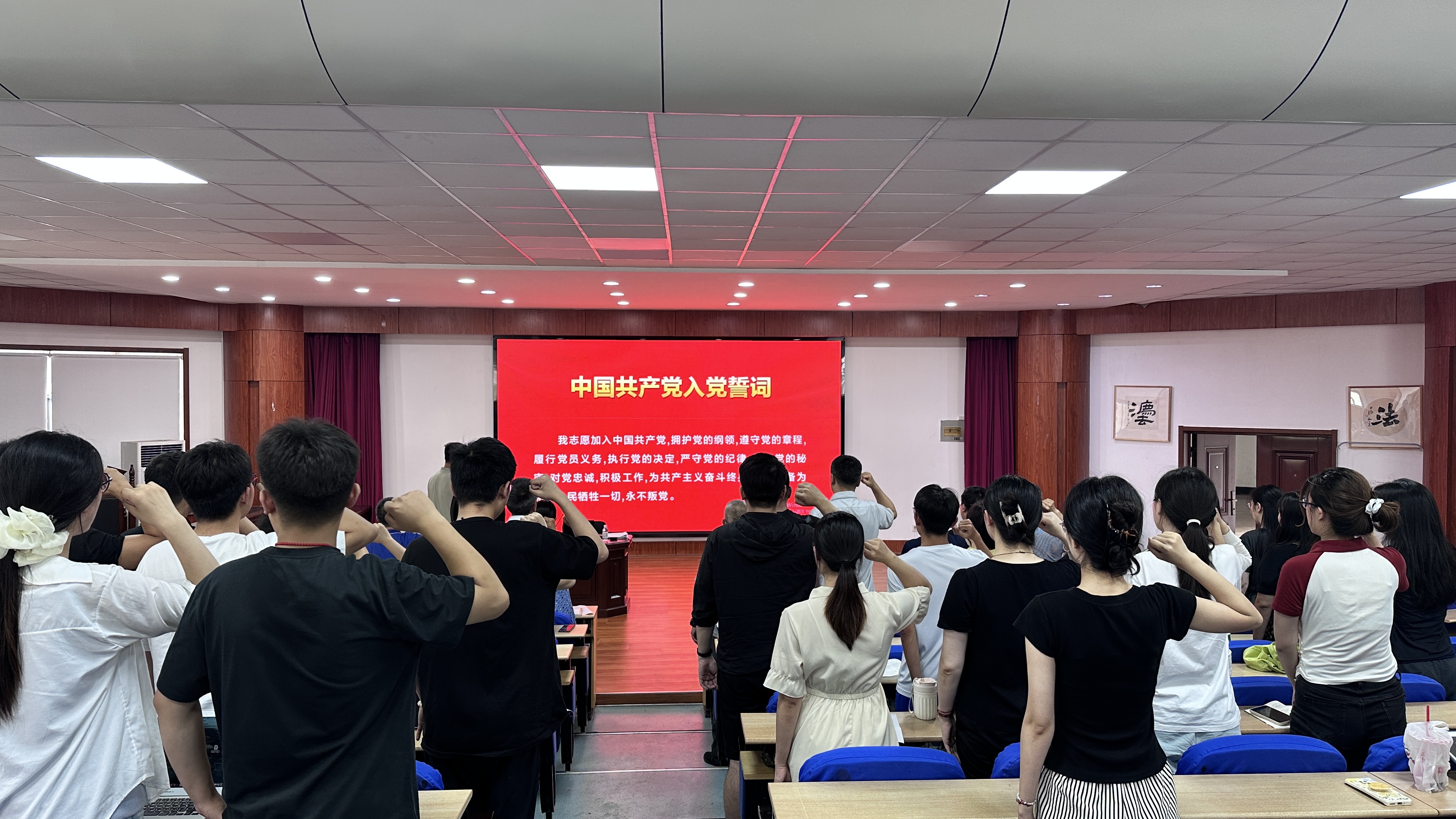 最后,曲明带领全体师生党员面向党旗重温入党誓词,字字千钧,宣誓声整齐而坚定,回荡在现场,也铭刻在每一位师生党员心中。