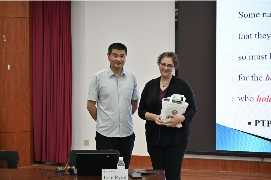 讲座结束后,辛帅代表太阳成集团tyc9728向Ryan教授赠送纪念品并予以教师节祝福。