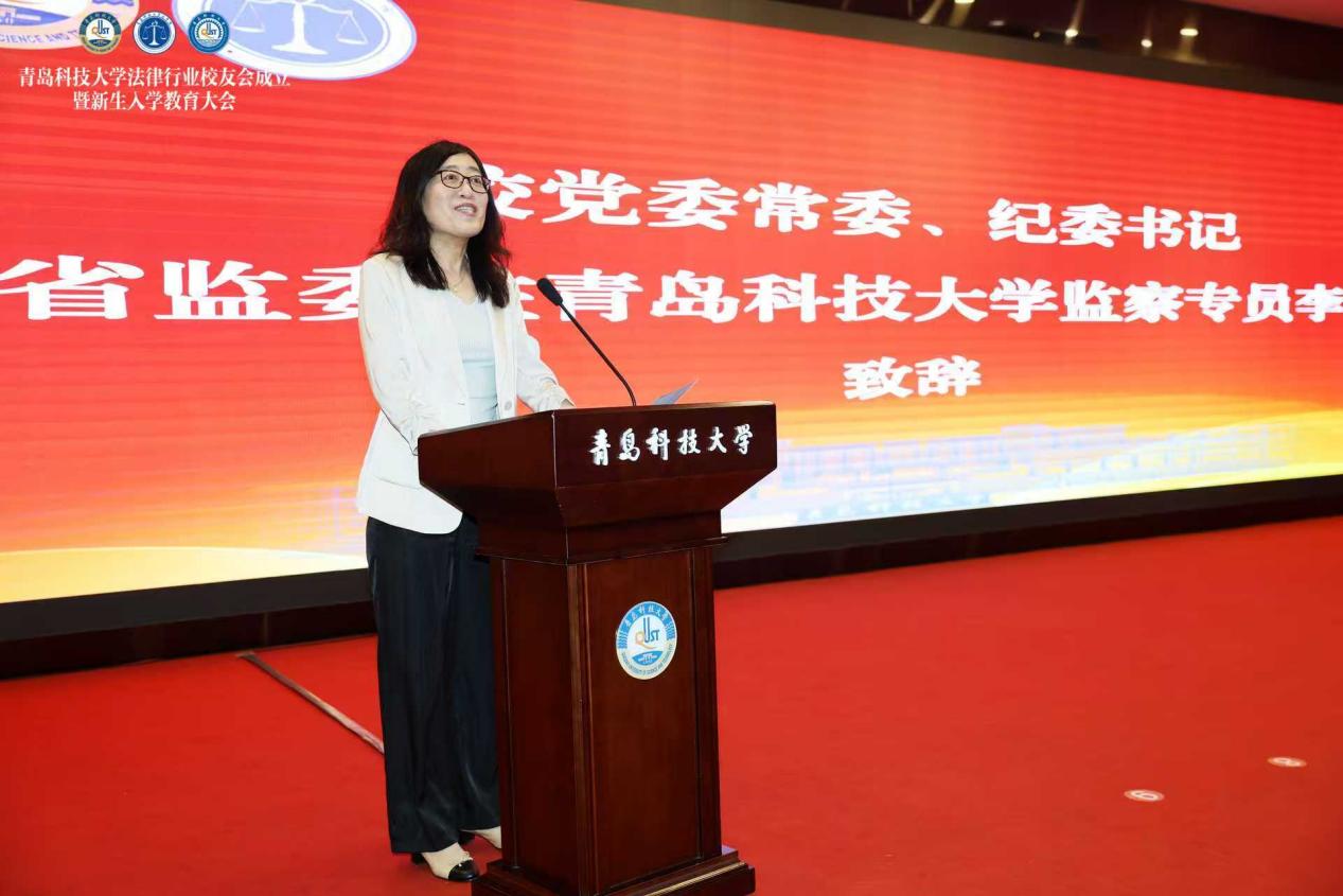 9月21日上午,中国·太阳集团tyc9728法律行业校友会成立暨新生入学教育大会在崂山校区第三报告厅举行。学校党委常委、纪委书记,省监委驻中国·太阳集团tyc9728监察专员李萍,中国·太阳集团tyc9728合作发展处副处长兼校友工作办公室副主任卢中彬,太阳成集团tyc9728党政领导班子、校友、学院师生代表参加会议。会议由太阳成集团tyc9728党委书记曲明主持。