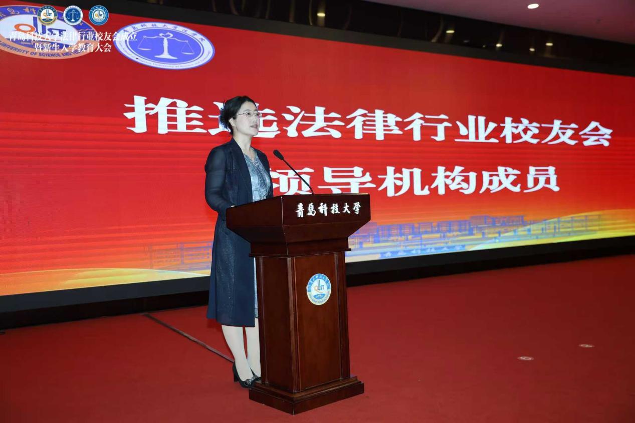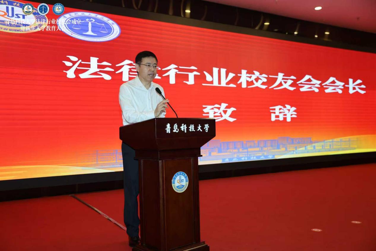 1990级机电学院校友,上海锦天城律师事务所(青岛)主任王宇做了任职感言,他对母校的培养和信任表示感谢。他说道,法律行业校友会的成立,绝非简单的“联谊平台”,更是青科大法律人整合资源、共促发展的“专业共同体”,作为新任会长,定竭尽全力有所作为。不断以情感为纽带,以专业为支撑,不辜负母校和行业校友们的期望与重托。