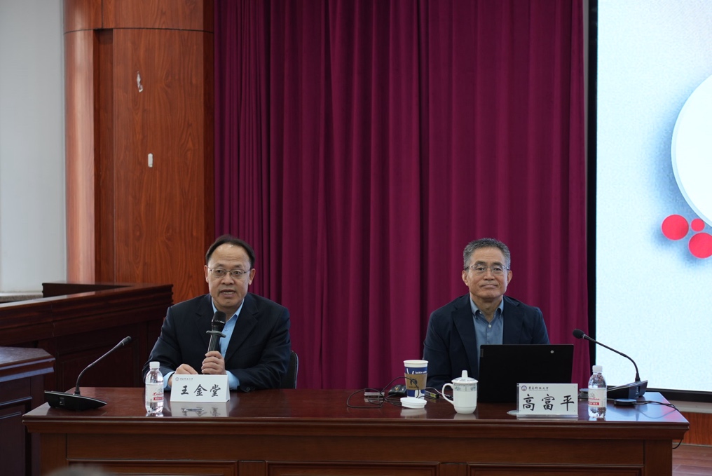 示范课伊始,王金堂对高富平的到来表示热烈欢迎,并向在场师生介绍了高教授在数字法学领域的深厚学术造诣与丰硕研究成果。他指出,随着数字技术飞速发展,数字社会对法律体系与法学研究提出了全新挑战,本次《数字法学》示范课恰逢其时。
