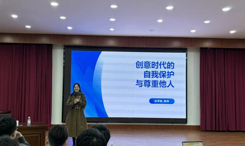 随后,谢帅进行了专题分享。她结合最新《著作权法》的修订要点,系统梳理了影视作品相关的著作权法律体系,深入剖析了传播技术革新带来的法律挑战,并对如何规避侵权风险、依法维护自身权益提供了具体指导,帮助现场学子建立起扎实的法律知识框架。