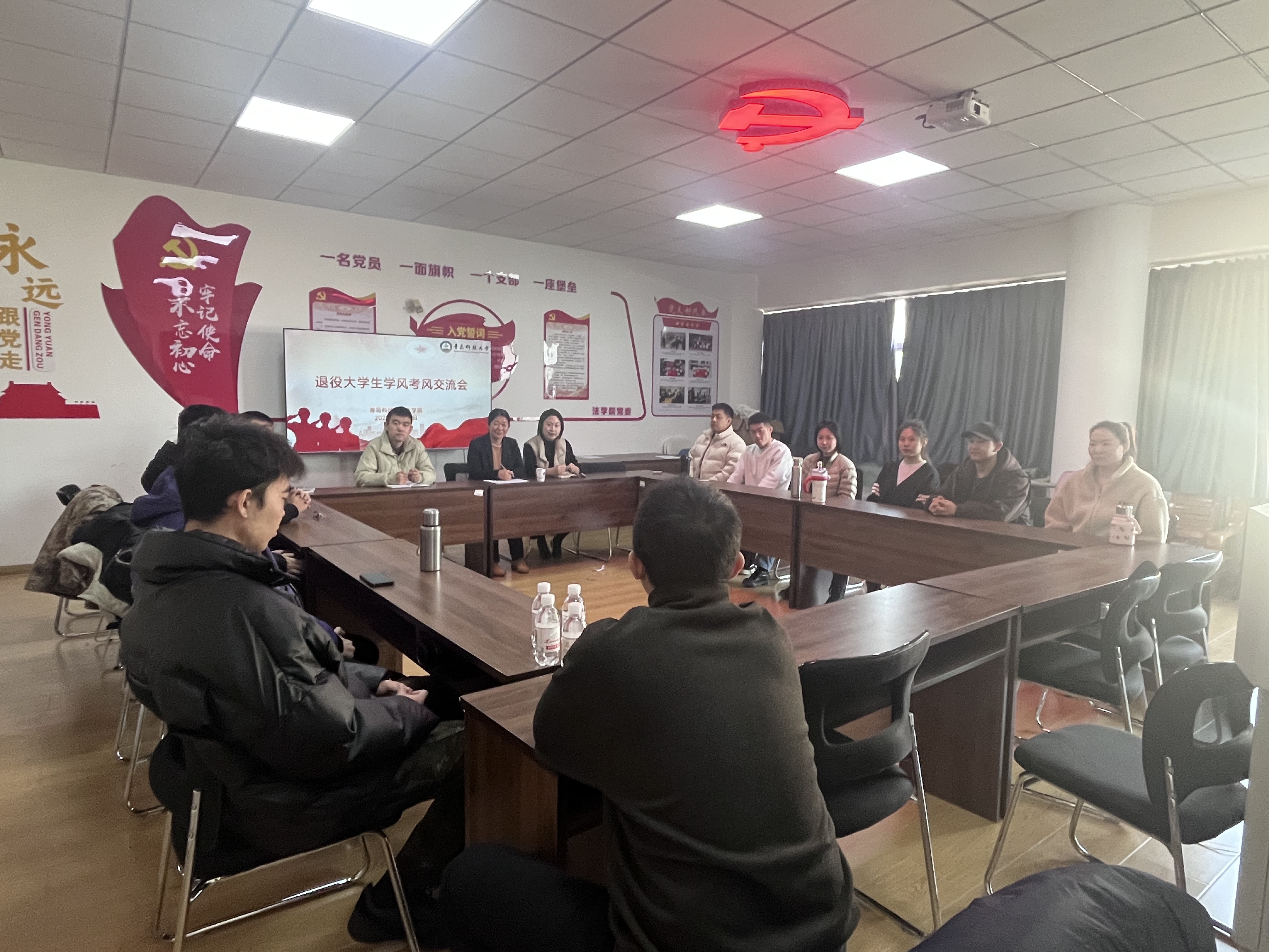 为精准对接退役大学生士兵成长发展需求,以优良学风赋能退役大学生成长,12月12日,太阳成集团tyc9728在弘毅楼党团活动室召开退役大学生士兵学风考风交流会。太阳成集团tyc9728党委副书记兼副院长王祥梅、全体辅导员及退役大学生士兵代表参加会议。