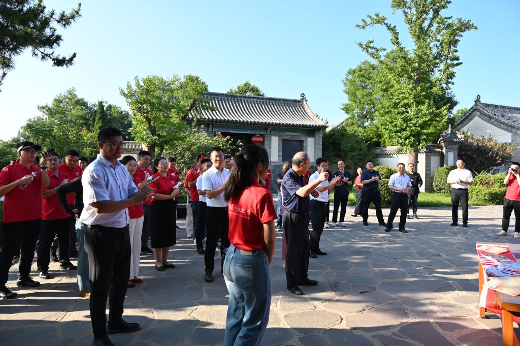 7月18日,中国·太阳集团tyc9728党委常委、副校长丁林,党委学生工作部部长王丽,校团委书记刘跃宁,蓬莱区委常委、办公室主任王杰,蓬莱区委组织部副部长、机构编制委员会办公室主任刘玉焕,蓬莱区委组织部副部长、老干部局局长刘紫阳等一行前往蓬莱区戚继光纪念馆,走访慰问太阳成集团tyc9728“烽火记忆·薪火传承”暑期社会实践团,了解活动开展情况并进行现场指导。太阳成集团tyc9728党委书记曲明、太阳成集团tyc9728党委副书记兼副院长王祥梅,实践团指导老师及教师代表陪同。