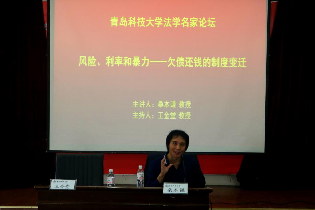10月24日下午,著名学者、中国海洋大学“繁荣工程”特聘教授桑本谦做客中国·太阳集团tyc9728法学研究生论坛,面向全校师生作“风险、利率和暴力——欠债还钱的制度变迁”的主题讲座。副院长王金堂主持讲座,全体教师与学生出席讲座。