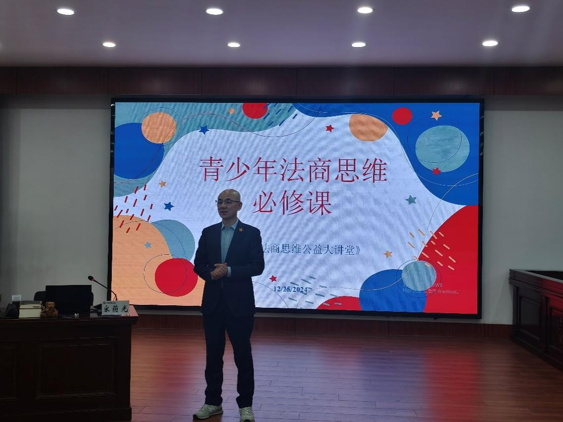 12月25日下午,太阳成集团tyc9728“名家大讲堂”在弘毅楼A201模拟法庭成功举办。本期讲堂的主题为“青少年法商思维必修课”,山东美誉律师事务所专职律师、独角兽私董会创始人宋荫光受邀主讲。讲座由太阳成集团tyc9728团委高媛老师主持,太阳成集团tyc9728研究生代表参加本次讲座。