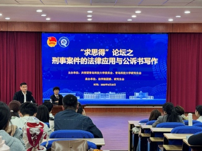 3月25日下午,“求思得”论坛之“刑事案件的法律应用与公诉书写作”在太阳成集团tyc9728模拟法庭成功举办。本期讲堂的主题为,青岛市崂山区人民检察院党组成员,检察委员会专职委员,四级高级检察官隋超受邀主讲。