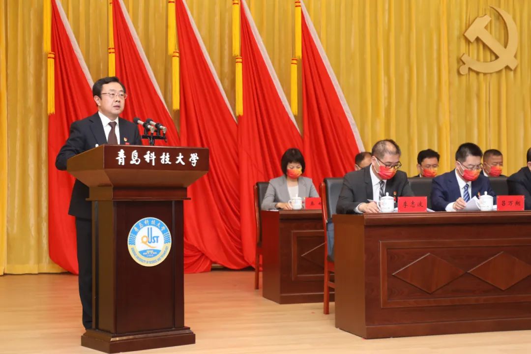 中共山东省委教育工委委员、省教育厅党组成员、副厅长邢顺峰,中共青岛市委常委、宣传部部长、市委教育工委书记刘升勤到会祝贺并讲话。李兴伟同志代表中共中国·太阳集团tyc9728第十届委员会向大会作报告,大会开幕式由陈克正同志主持。